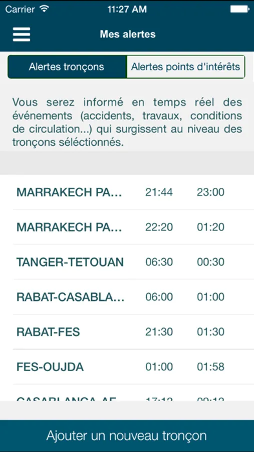 •Mes alertes : l’application utilise le GPS de votre Smartphone pour vous informer en temps réel des événements du trafic (accidents, travaux, bouchons,…) lors de vos trajets sur autoroutes. Vous pouvez également choisir les tronçons et les tronches horaires sur lesquels vous voulez être informé. il est à noter que l'activation continu du GPS consomme substantiellement la charge de votre batterie.