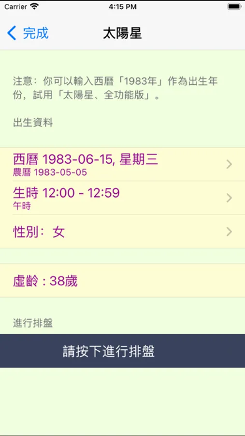 4. 可輸入西曆或農曆出生日期。