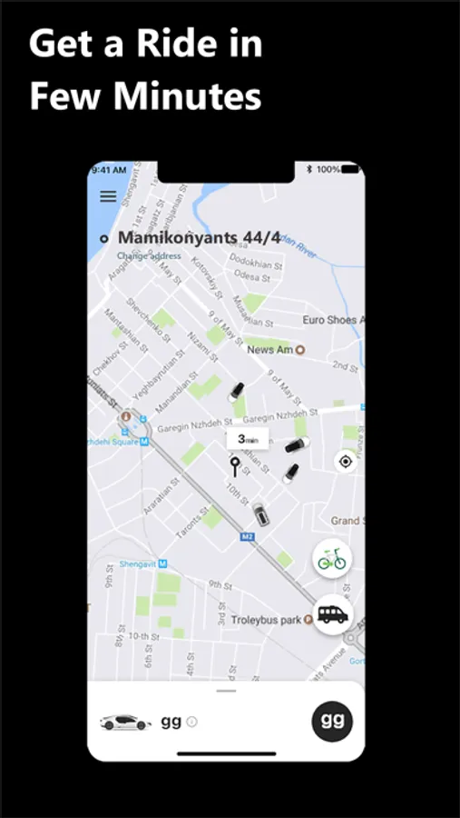 gg is your ultimate way of getting reliable ride and transportation in Russia, Georgia and Armenia. Request a ride with a tap of button and the partner will pick you up within 5 minutes. At the end of the ride you can rate it and help us to improve the quality of our service.