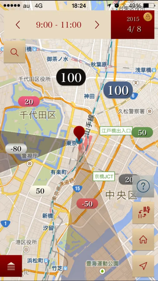 現在地を中心にした各方位の点数を確認することができます。