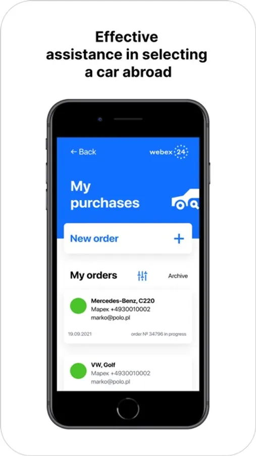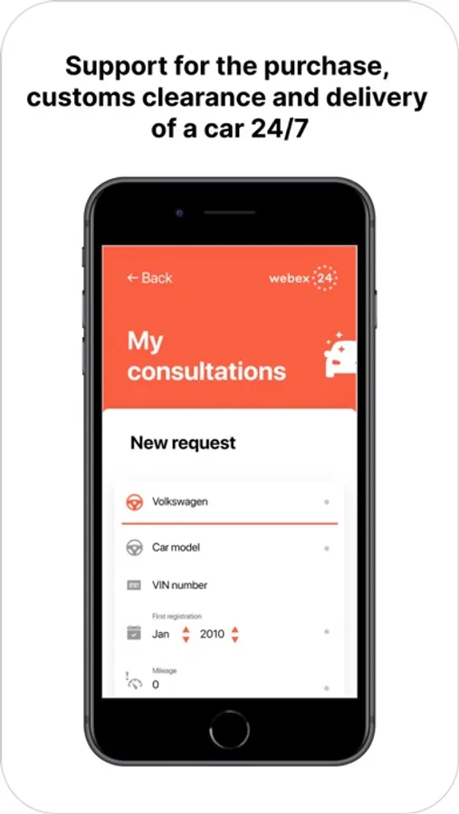 Buying and paperwork for transport anywhere in the world will be easy with webex24. Complete information about your deals literally "in your pocket". Suitable for brokers, car traders and car dealerships, car houses and drivers who deliver vehicles from anywhere in the world and by any transport. Request vehicle purchase deal, clarify any details during the process using chat with your manager and get notified about the process in real time. Send and receive needed documents using the app, obtain preliminary evaluation on the go and review accumulated cost breakdown directly in your request.