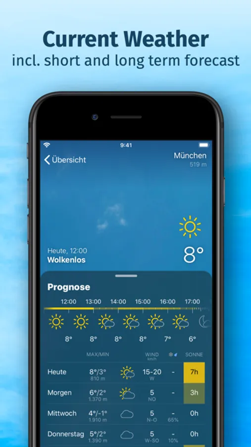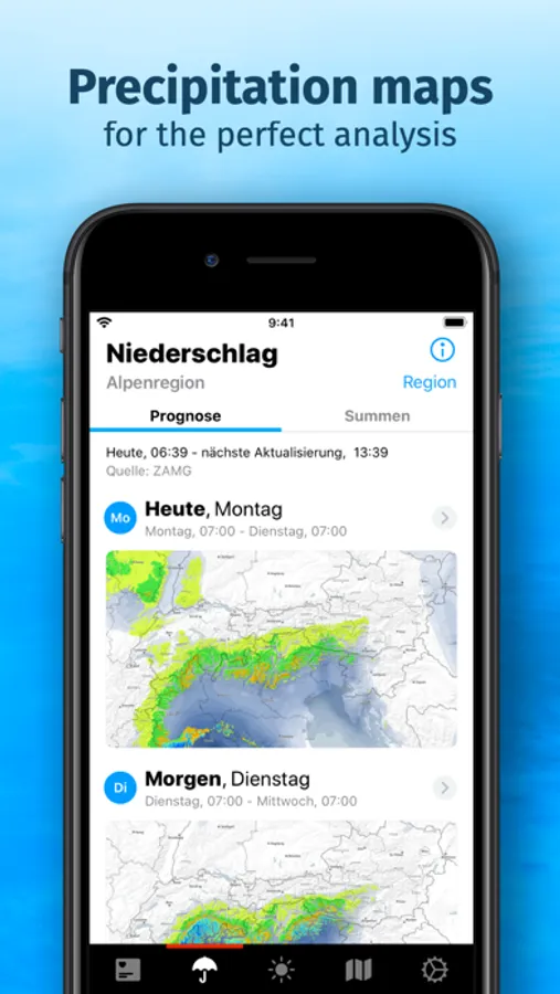 In this weather app you will receive all weather forecasts and mountain weather forecasts of the Bergfex website for the Alpine region (Austria, Germany, Switzerland, Italy and Slovenia - incl. mountain weather forecasts).