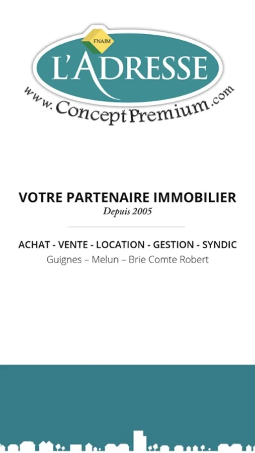 L'agence Concept Premium et son équipe sont heureux de vous accueillir sur leur application. L’occasion de découvrir l'appartement Guignes ou la maison Mormant que vous cherchez Pour vous servir au mieux, nous exerçons les métiers de l'immobilier suivants. Transaction : achat et vente de maisons sur Verneuil l'étang, d'appartements Chaumes en brie , de terrains Coubert, de grange, de biens à rénover ou de tout autre biens atypiques sur les secteurs de Guignes, Verneuil l'étang, Chaumes en brie, Mormant, Coubert,... Estimation gratuite sous 48h, étude du financement des acquéreurs et du projet d'achat, conseils juridiques, accompagnement jusqu'à la signature authentique et service après vente. Location : estimation de la valeur locative de votre bien, recherche de locataires, visites et rédaction du contrat de location et de l'état des lieux détaillé. Nous faisons aussi de la Gestion locative, de l’Immobilier d'entreprise et du Syndic de copropriété sur les secteurs de Melun, Brie Comte Robert, Coulommiers, Carré Sénart, Marne la vallée,...