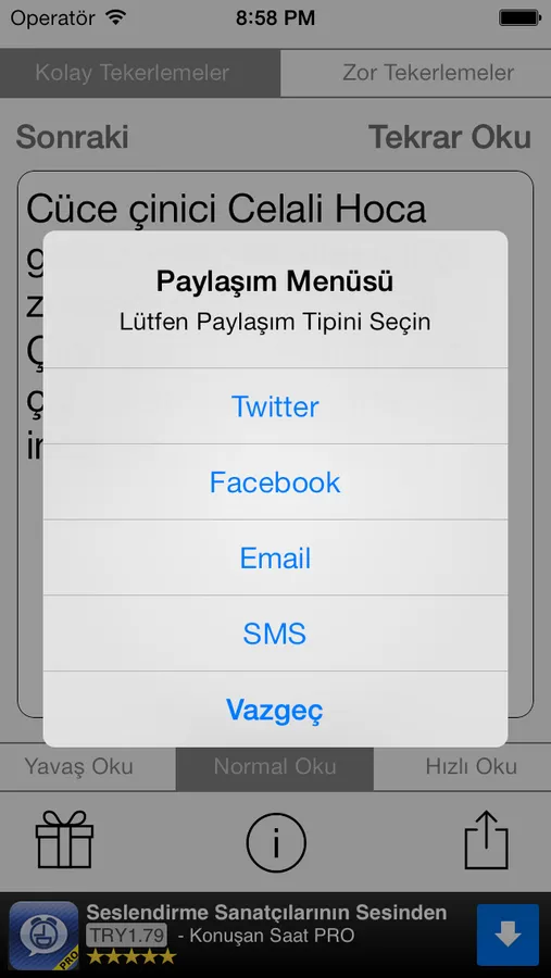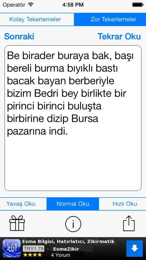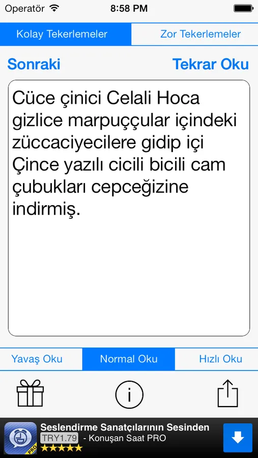 İki ayrı zorluk derecesinde yüzlerce tekerleme, 3 ayrı hızda seslendiriliyor. İster sende söylemeyi dene, ister dinle eğlen.