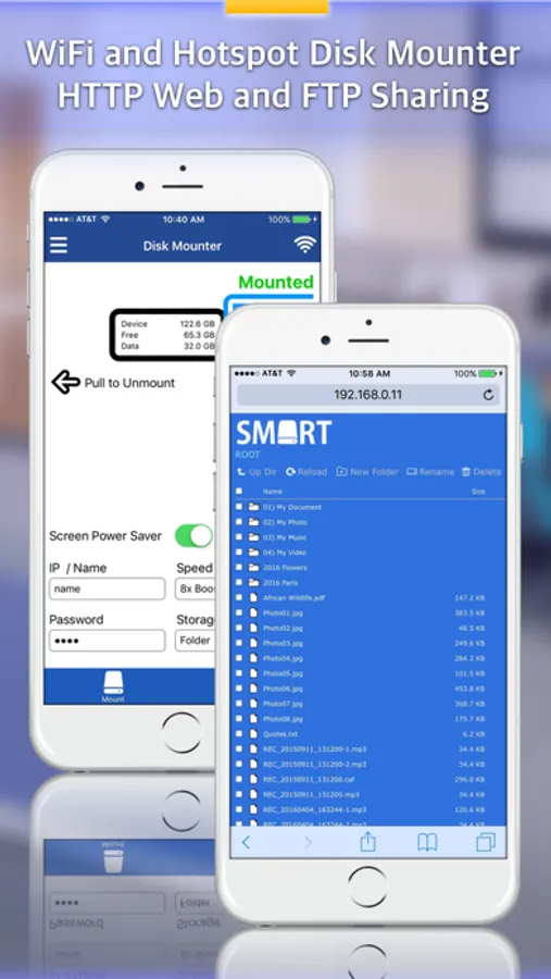You can mount the saved files in your smart phone to Mac or Window PC conveniently.