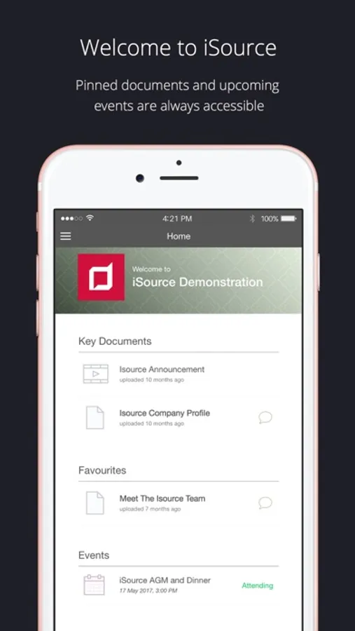 isCommunicate keeps you up-to-date with the latest meetings and information. Events created in isCommunicate can include event relevant documents and benefit from Apple Maps integration.