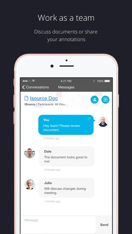 isCommunicate empowers you to work both online and offline, remotely or in the office. Once a document is downloaded it is accessible at any time. Real-time messaging and annotation sharing make it possible for teams to collaborate without the need to be in the same room.