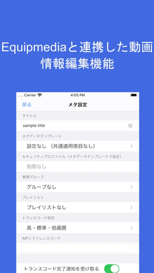 EQアップローダーはJストリームが提供する動画プラットフォームであるEquipmedia(EQ)に動画をアップロードするためのアプリです。