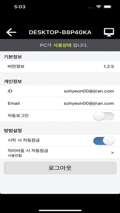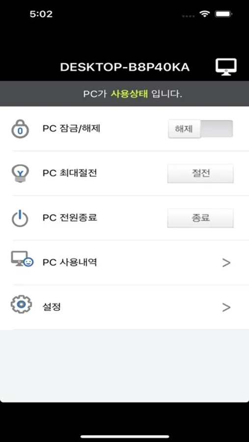 에스원 PS PC 잠금관리 앱을 통해 PC를 잠그거나 PC를 종료할 수 있습니다.