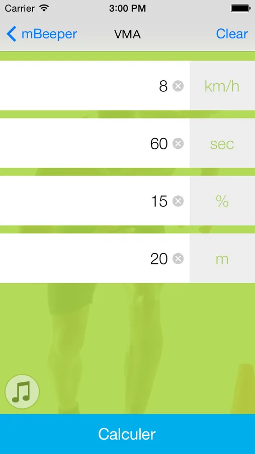 Plus besoin de calculette ou de support papier, mBeeper vous permet également de déduire rapidement la VMA grâce à sa feuille de calcul paramétrable.