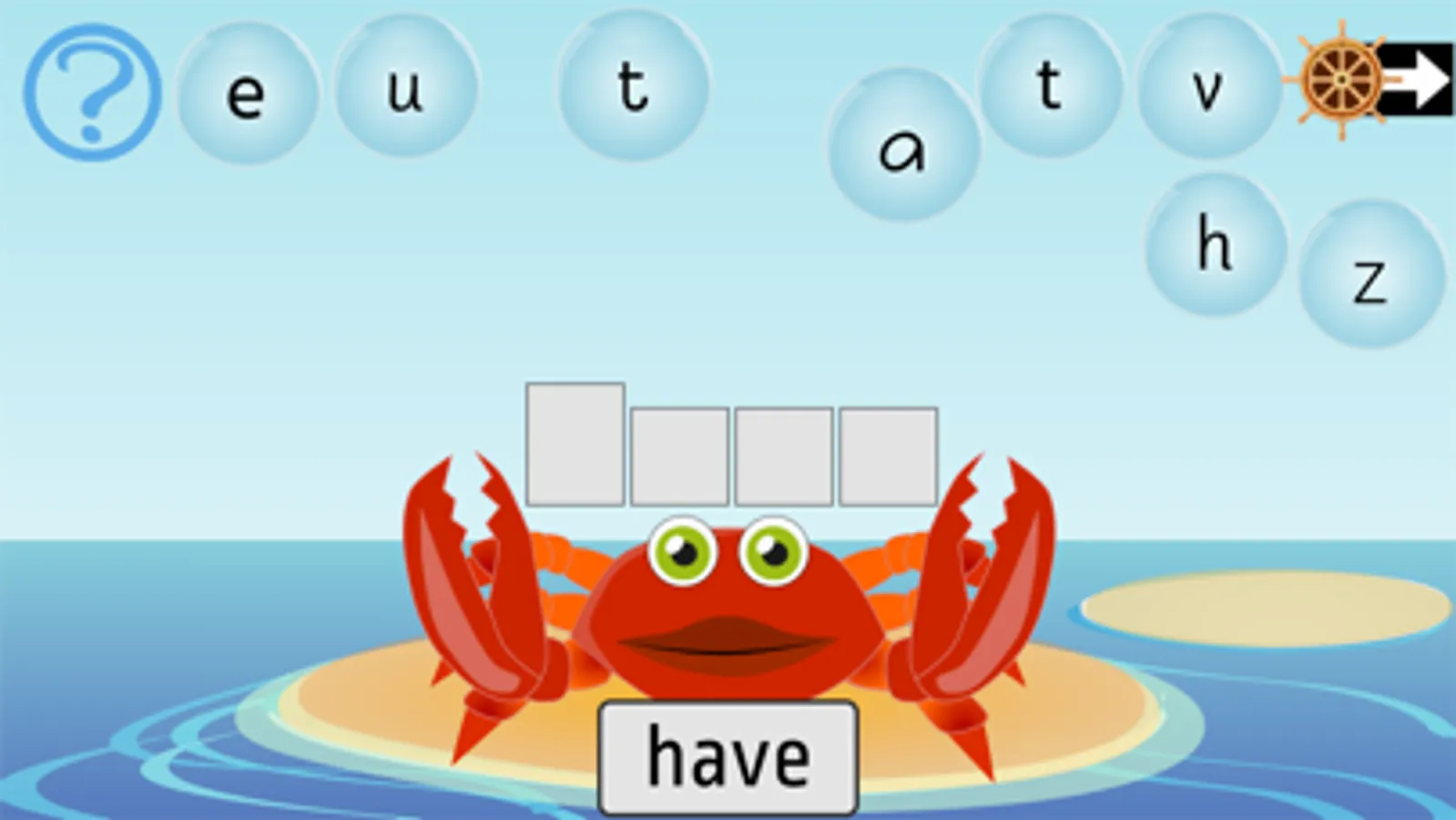 3 - Crabby Clara: Building a word from its component parts, ie the letters (one to one correspondence, attendance to word shapes, letter recognition, understanding that words are made up of letters)