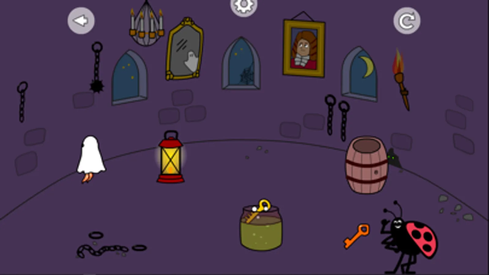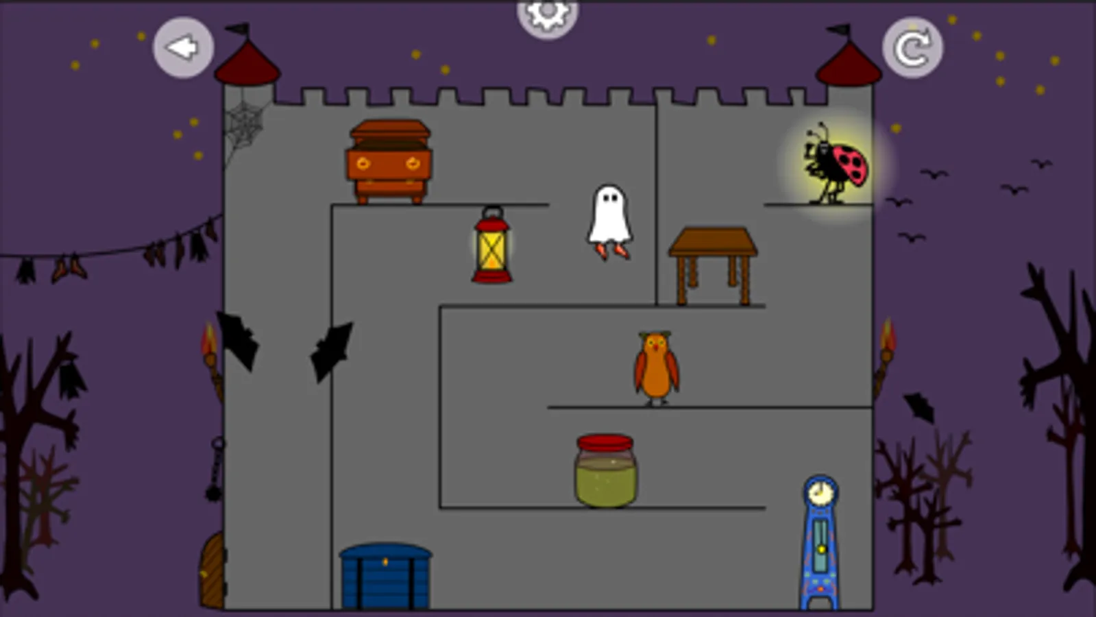 • I slottet dyker det upp en labyrint. Här får ni utforska rumsförhållanden genom att dra ett spöke genom labyrinten till nyckelpigan.