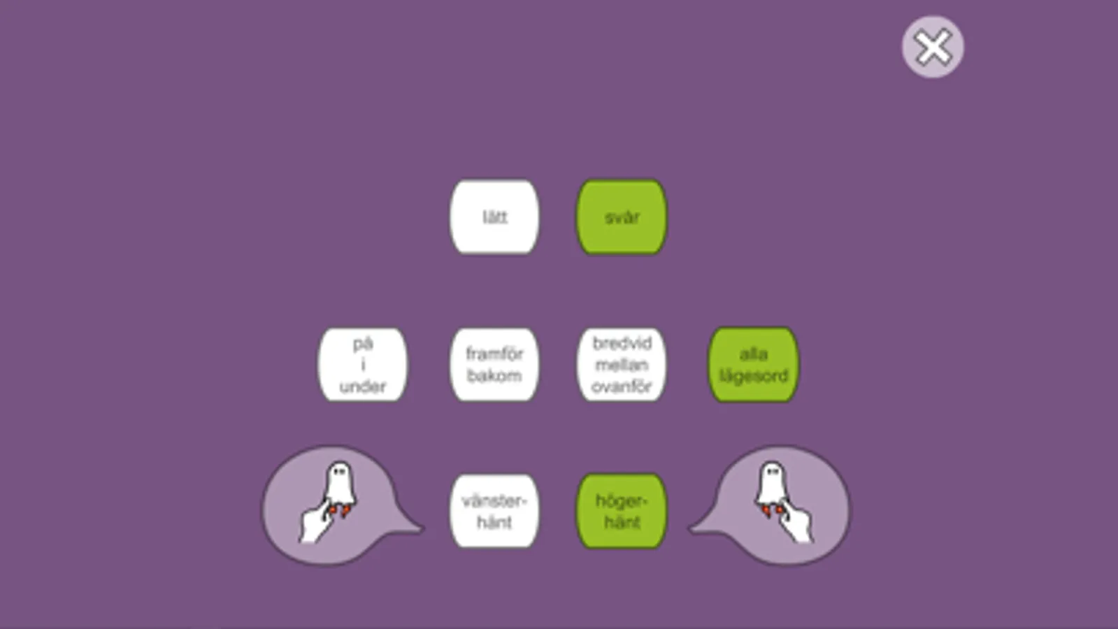I skogen och tornrummet kan ni välja vilka lägesord ni vill träna på: