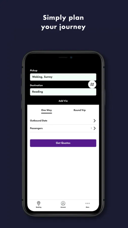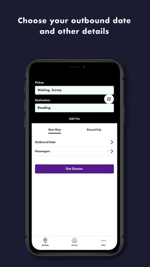 1. Launch the app and enter your journey details: pickup, destination, date, time,