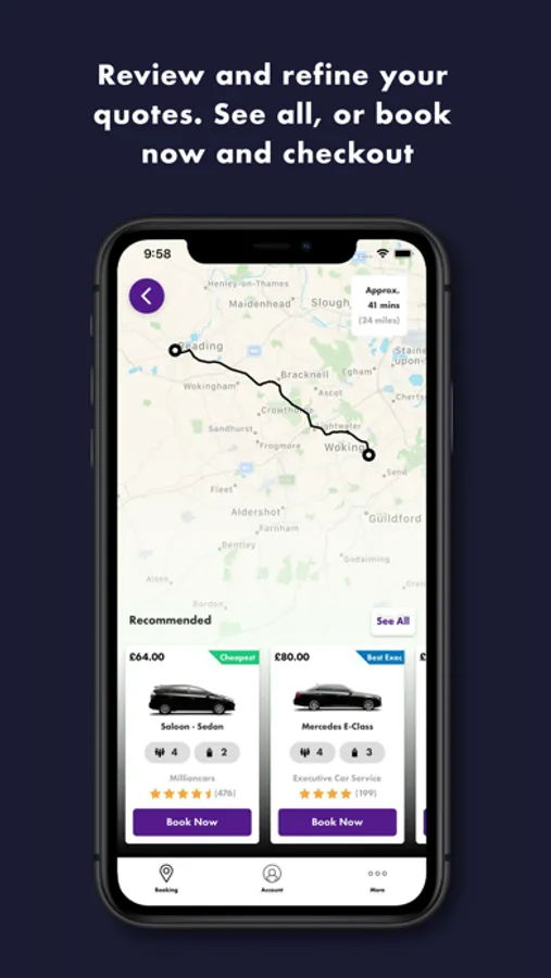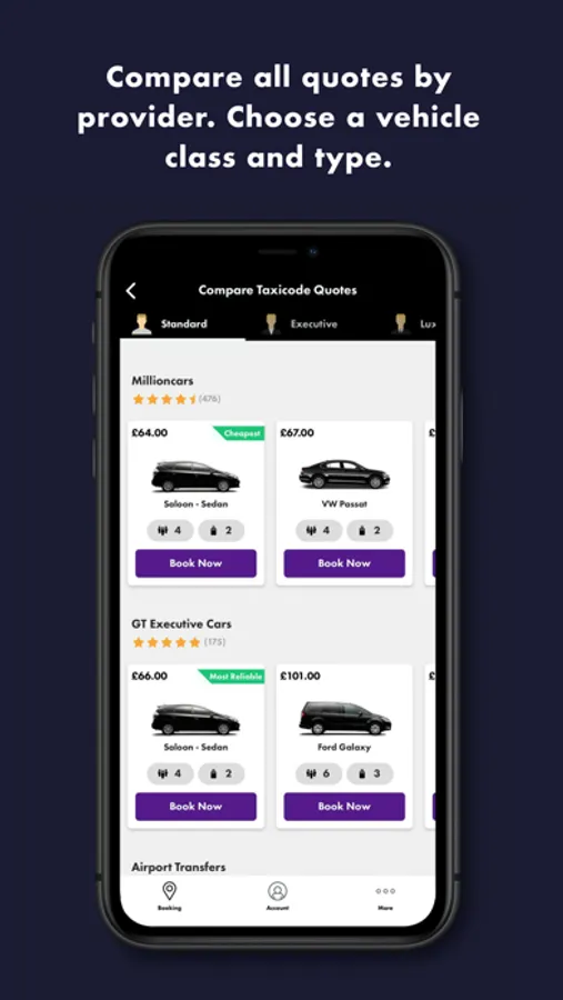 2. Review multiple real-time quotes from Taxi, Minicab, Minibus and Coach Companies, and see how other users on a 5-star scale have rated them.