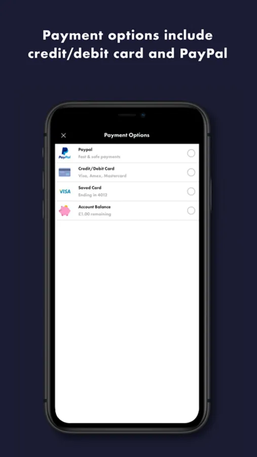 4. Choose your desired method of payment: saved credit card, new credit card, or cash to the driver.