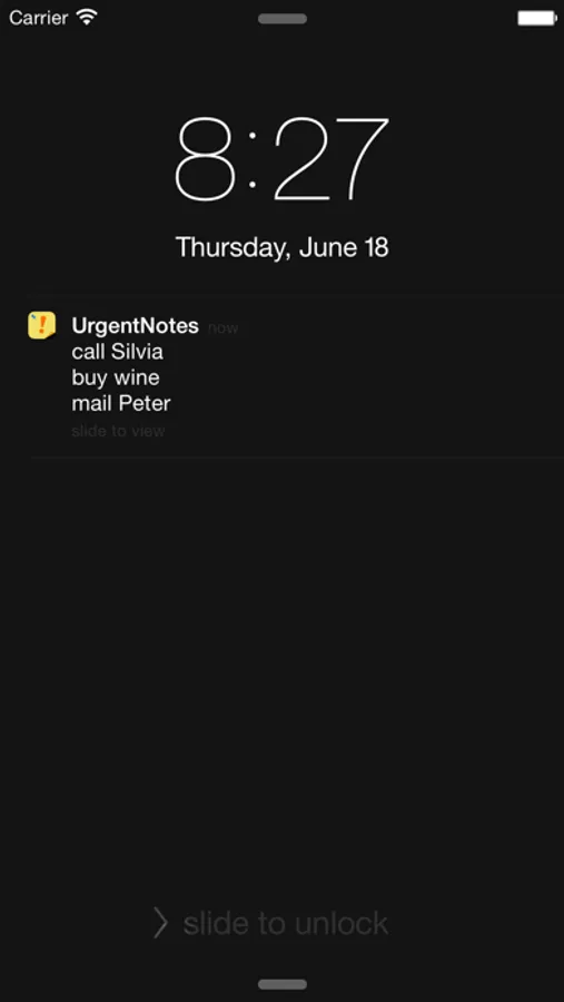 Important: The "Background App Refresh" (Settings → General → Background App Refresh) has to be turned on for the "Urgent Notes" app. (This will not drain the battery as no online activity will take place.)