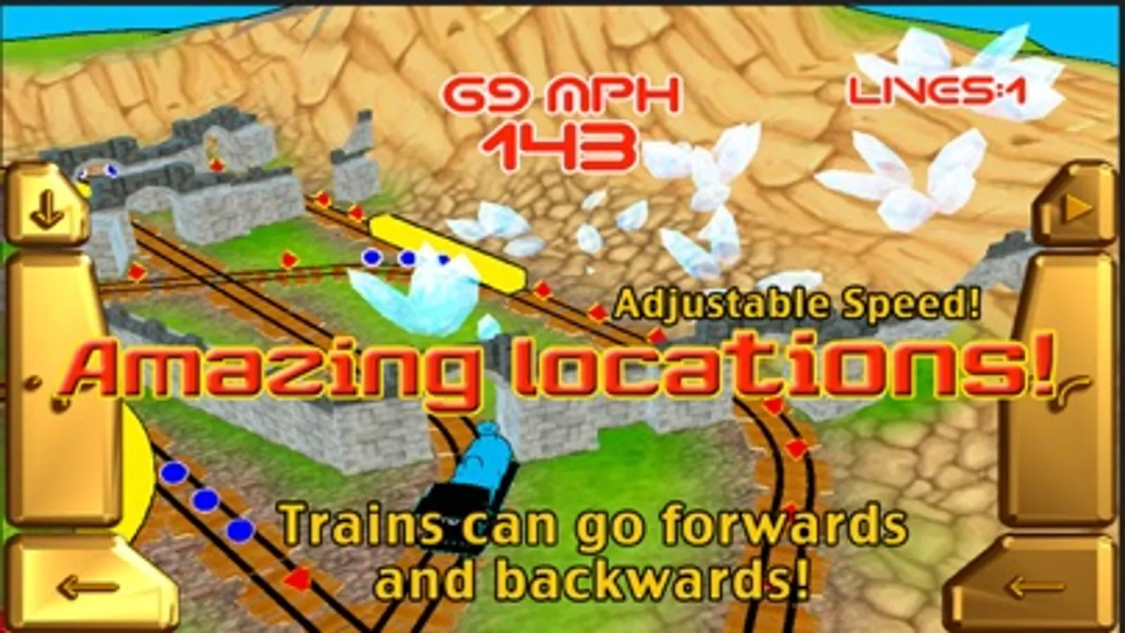 Drive the SpeedTrain around the train tracks and collect all the diamonds to advance through levels!