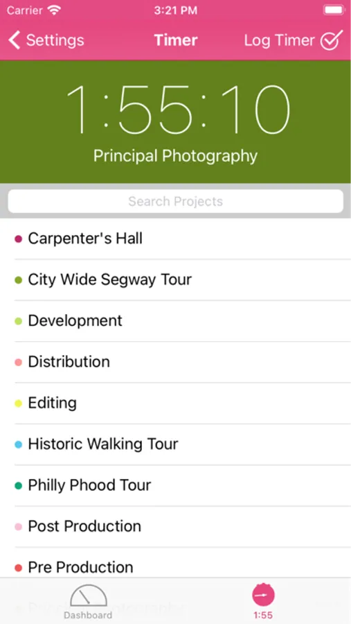 • Start, pause and log timers