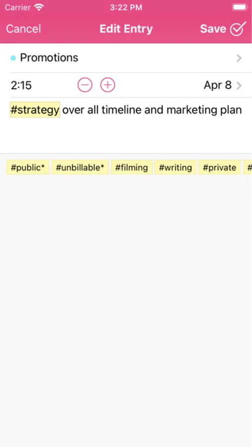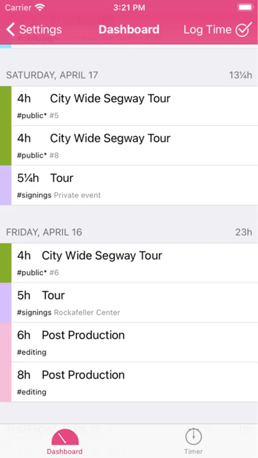 • Log time in between, when you're in a meeting or at a clients site and don't have your computer