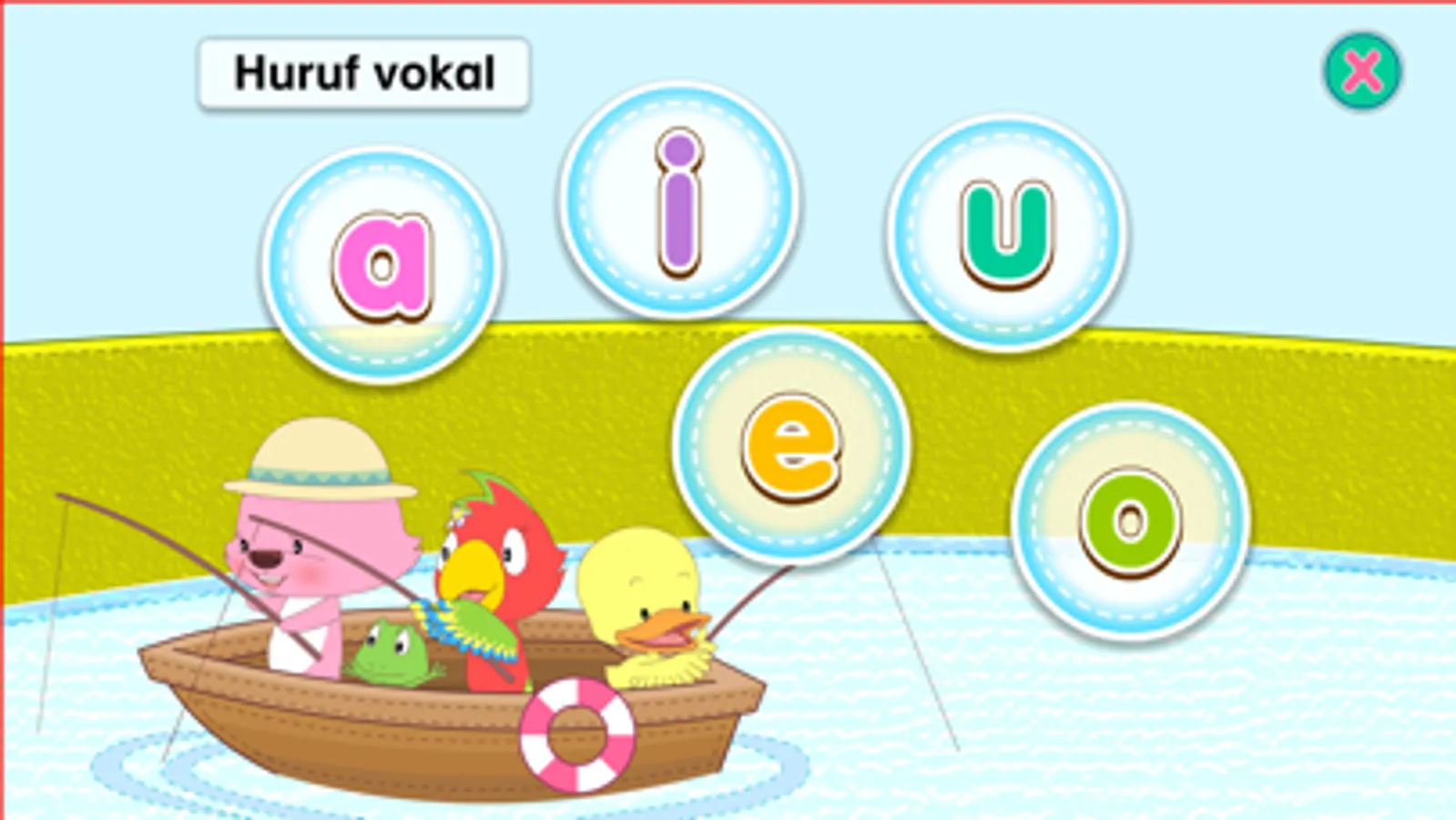 - Menamakan, membunyikan dan menuliskan huruf vokal (V)