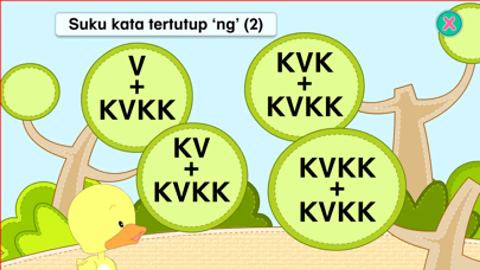 - Membaca perkataan dan ayat yang mengandungi suku kata tertutup ‘ng’