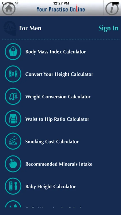Using this Health Navigator app you get access to a host of Health Calculators that can help you track or motivate you to achieve your objective to a healthier self.