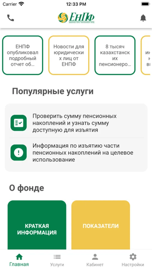 Приложение предназначено для клиентов (вкладчиков/получателей) Единого накопительного пенсионного фонда (ЕНПФ). Функционал приложения позволяет клиентам получать актуальную информацию о Фонде, а также подробные сведения о состоянии своего пенсионного счета.