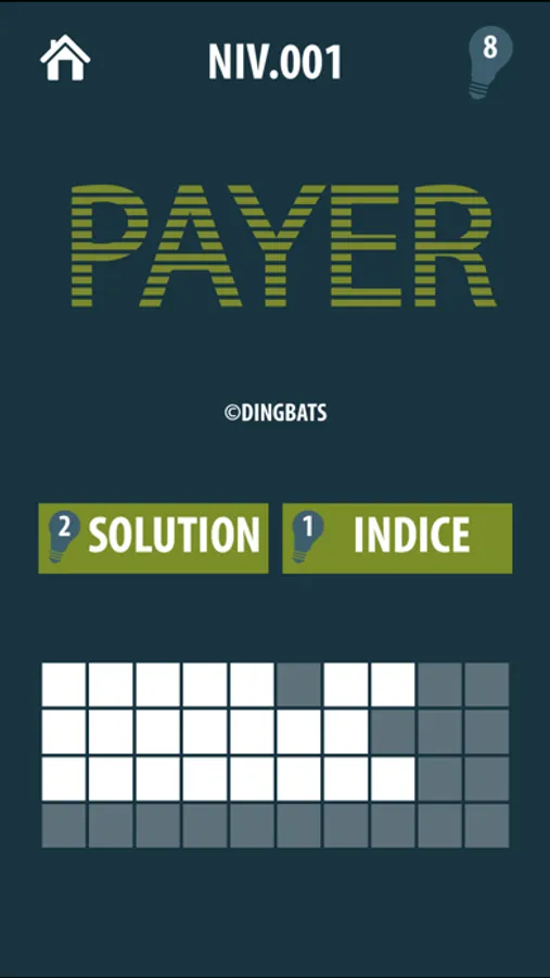 Dans Dingbats le jeu, on triche un peu… On fournit la grille des lettres qui composent la réponse, et vous pouvez même prendre un indice par dingbat, ou même la solution.
