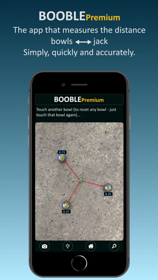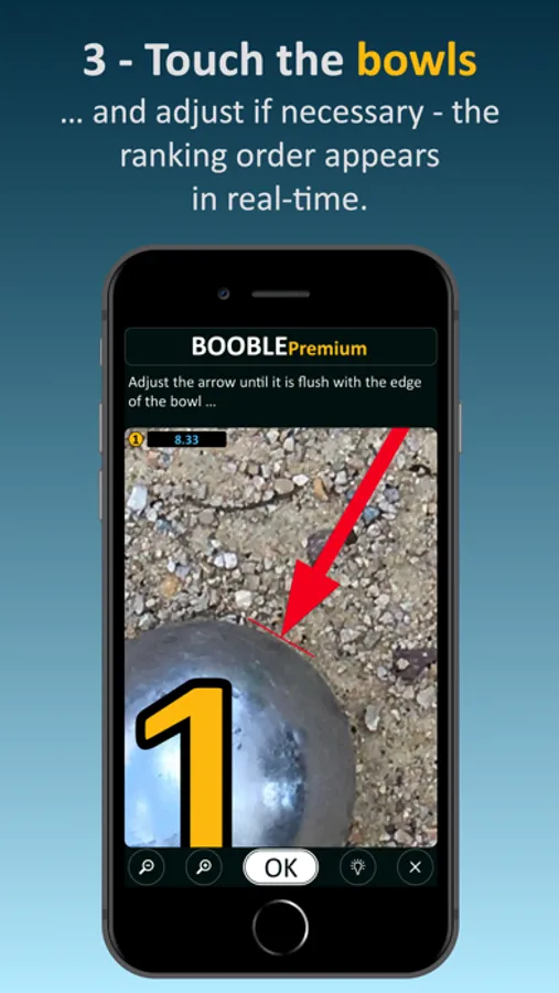 2. One only has to touch the boules and the jack on the screen and the application will automatically – through advanced visual recognition algorithms used in the industry - locate them.