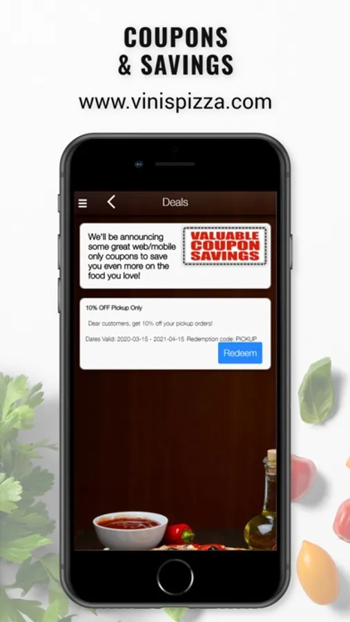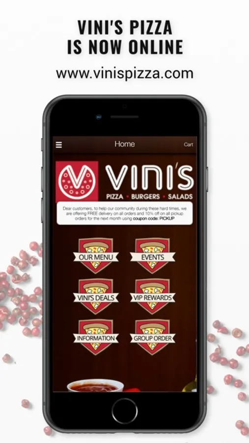 Now you can order from the Vini's Pizza app on your smartphone or tablet and get the latest deals and updates on our delicious menu.