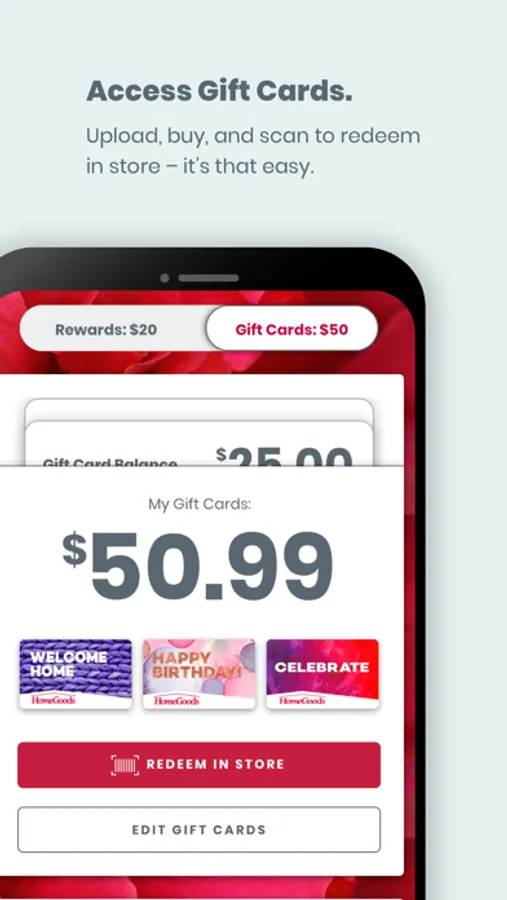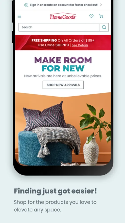 Welcome to the HomeGoods app! You already love to save on amazing finds at HomeGoods. Now our updated app makes it even easier!