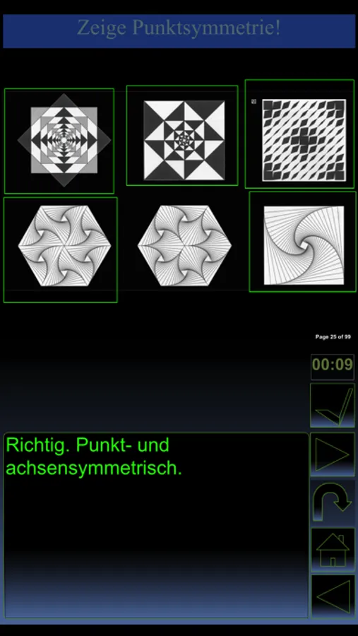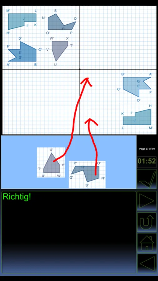 Zuerst entdeckst du die Lösungen handlungsorientiert, indem du Aufgaben löst, in denen du mit dem Finger Kärtchen, Pfeile und Begriffe zuordnest. Mit mathapp LU20 spielerisch zu lernen macht Spass. Dein natürlicher Spieltrieb wird genutzt um deine Mathematikkenntnisse zu verbessern und es braucht etwas Köpfchen. Das Niveau entspricht dem 7. Schuljahr. Es hat aber auch viele Aufgaben die schon in der Unterstufe gelöst werden können. Es hat auch anspruchsvolle Aufgaben, die du jedoch gut lösen kannst, weil alles genau erklärt wird und es Schritt für Schritt schwieriger wird. Im Probiermodus kannst du alles zuerst selbst entdecken. Du bekommst immer sofort Feedback. Innerhalb einer gewissen Zeit kannst du sogar Fehler wieder korrigieren oder die Seite wiederholen und lernst aus Fehlern. So entdeckst du Schritt für Schritt vom Einfachen zum Schweren wie alles funktioniert. Im Kapitel Symmetrien Level 1 machst du Zuordnungsspiele die mega Spass machen. Bei Symmetrien Level 2 wird es etwas schwieriger. Auch die Kapitel Winkel sind in Level 1 und 2 aufgeteilt. Du lernst das, was du in einer Schulprüfung über diese Themen wisssen musst. Im Schlusstest kannst du dann nicht mehr korrigieren und nicht mehr die Seite wiederholen, dafür werden die Punkte doppelt gezählt und das meiste wird repetiert. Am Schluss gibt es eine Auswertung in Punkten oder in Prozent. Du kannst dich mit deinen Kolleginnen und Kollegen vergleichen. Ein Zertifikat kann deiner Lehrperson geschickt werden. Wenn du einmal das Programm heruntergeladen hast, brauchst du keinen Internetzugang und keine Codewörter mehr. Du kannst im Bus, in der Badi oder wenn du warten musst spielerisch Wartezeiten sinnvoll nutzen. Innerhalb Sekunden bist du bereit am Lernen und kannst immer wieder dort weiter lernen wo du beendet hast. So macht Mathematik Spass. Wenn du die Aufgaben in mathapp LU20 gut geübt hast, kannst du das Kapitel Symmetrie, Punktsymmetrie und Winkel auch in der Schule. So kannst du deine Leistungen verbessern.