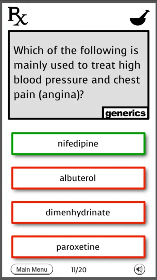 *In the Indications and Category quiz mode you'll be able to switch back and forth between seeing the brand or generic for each medicine listed with the click of a button. This way you can answer these questions by only seeing the brands OR generics if you want.