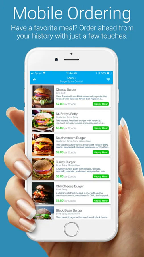 In participating restaurants, MobileBytes allows you to receive the entire restaurant menu, along with your personal order history so you can immediately order or re-order your favorite meal, exactly the way you like it, in a matter of seconds.