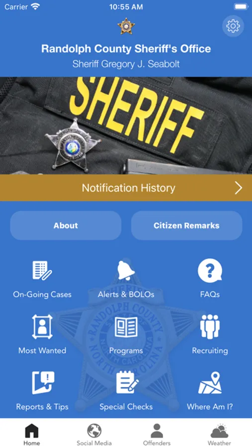 We welcome you to the Randolph County Sheriff's App. This program came from a citizen's request to be able to send smartphone photos to report suspicious vehicles. After looking at current technology we decided that information in real time would be a great asset. You the citizens now have the ability to partner with your Sheriff's Office to reduce crime in our community. With this app you can send crime tips with photos of what you see in our community in real time. We have included important links for your convenience. This program was funded by seized asset forfeiture monies, at no cost to the taxpayers.