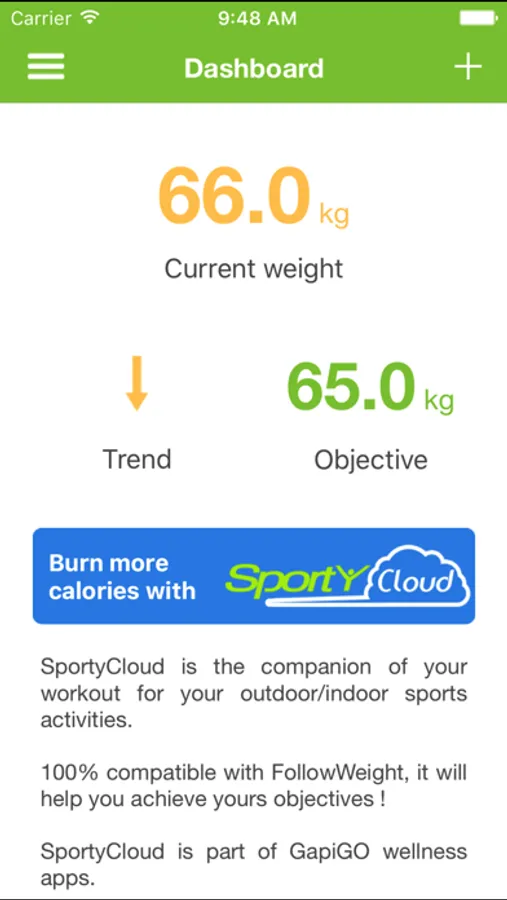 Daily save your weight, define objectives and follow your successes. Integrated coach helps you to reach them more easily !