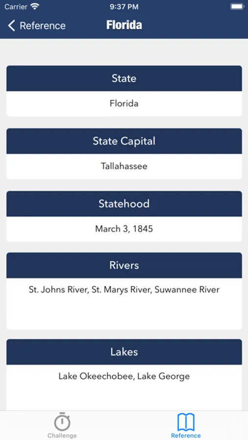 The app is setup into 2 sections: Trivia Challenge and Reference.