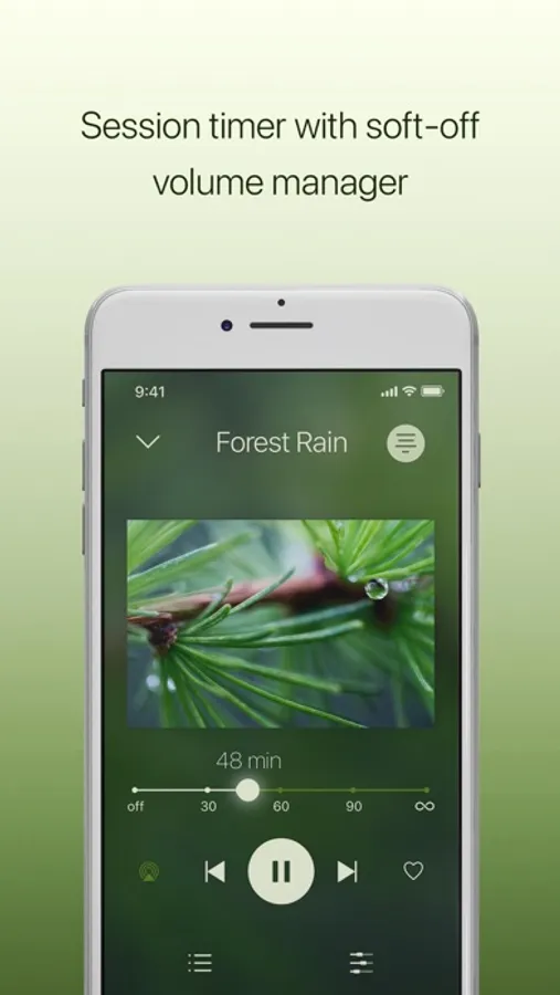This app includes 27 sounds, a unique 12-band equalizer for customizing each sound to your personal preference, a fully functional playback timer and soft-off volume management.