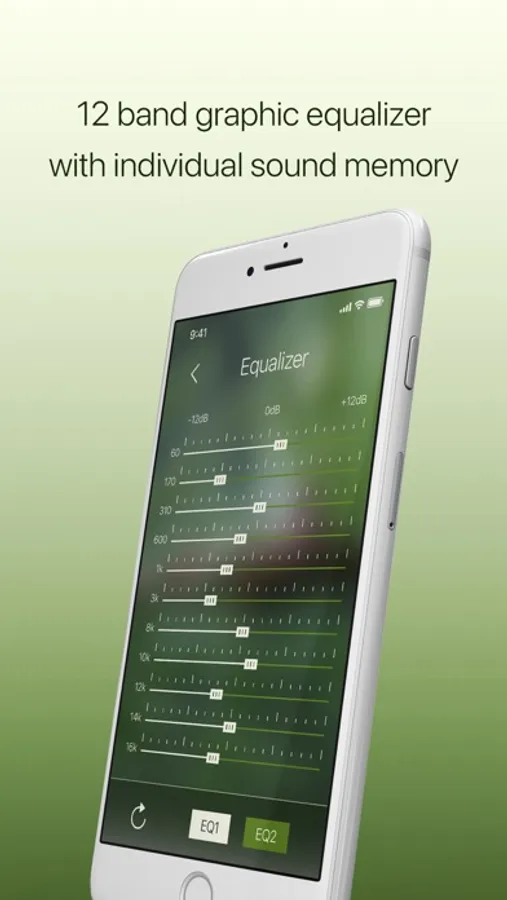- Control precise frequency levels of sound playback with exclusive 12 band graphic equalizer.