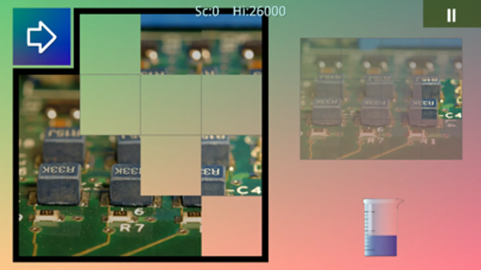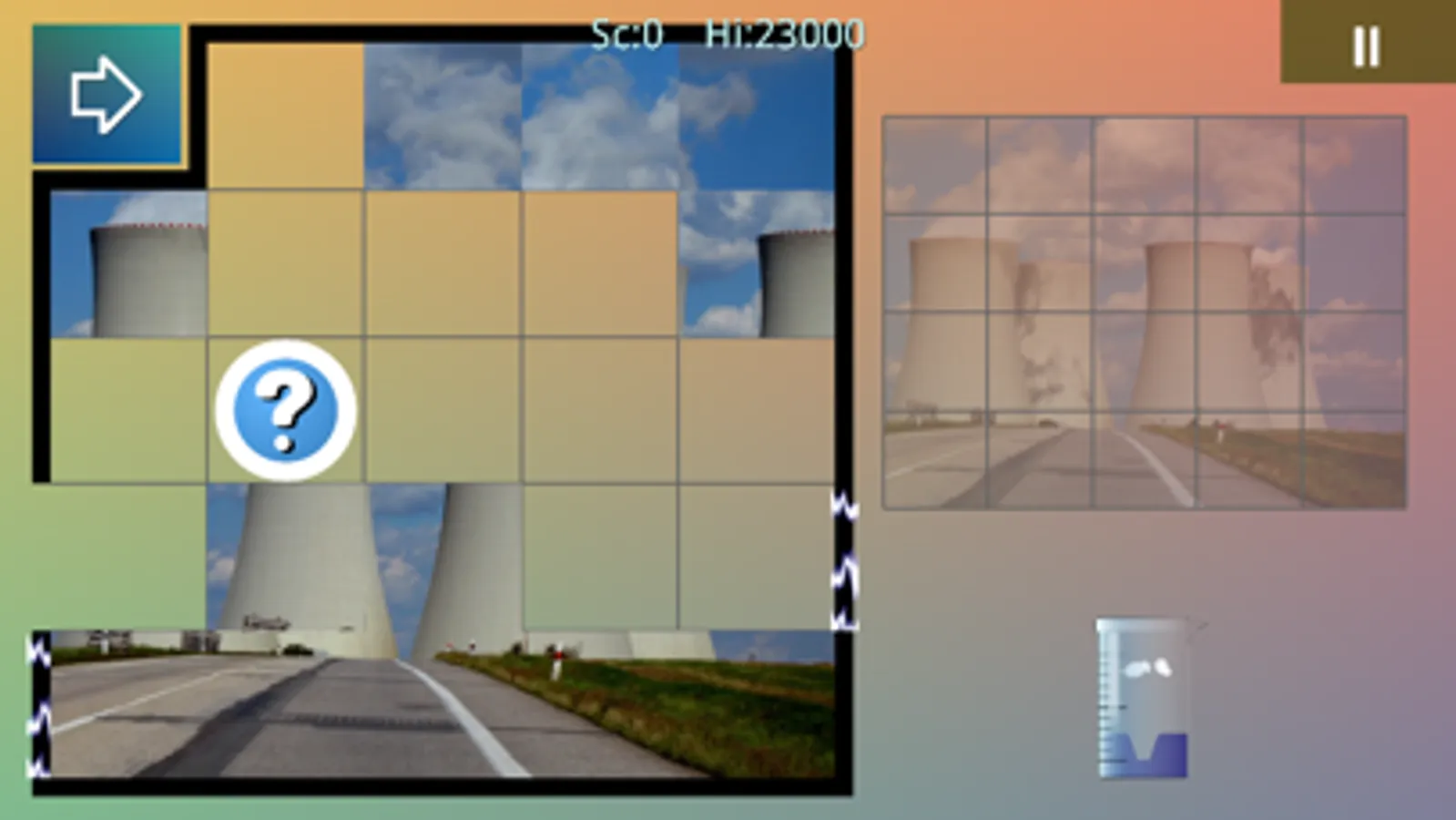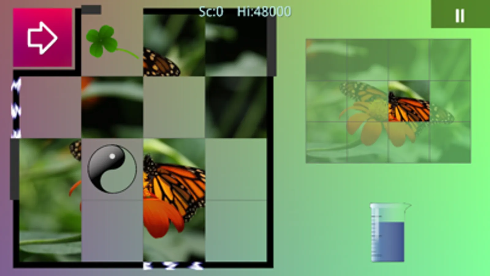 In the game you have to slide tiles until they are in the right position. There are several sizes and all the levels have a different background.