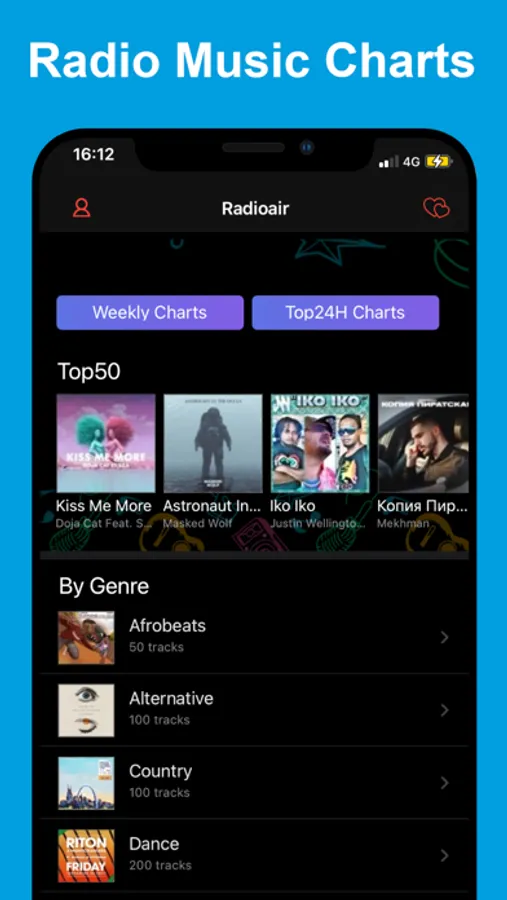 Radioair provides you with the musc charts of the world radio stations.