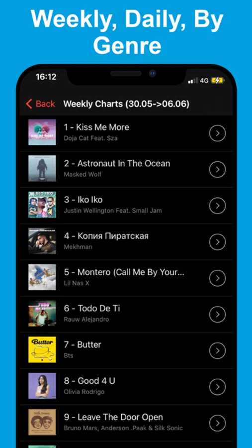 The charts are global and generated daily to instantly get the musical trends of the moment.