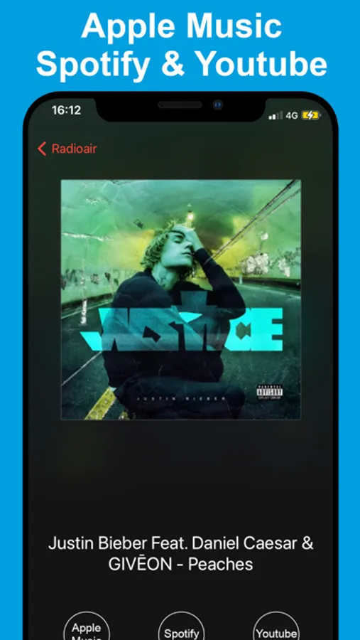 Each music can then be listened to through the following audio streaming services: Apple Music, Spotify, and Youtube. A favorite function will allow you to save the listening pages of your favorite music.