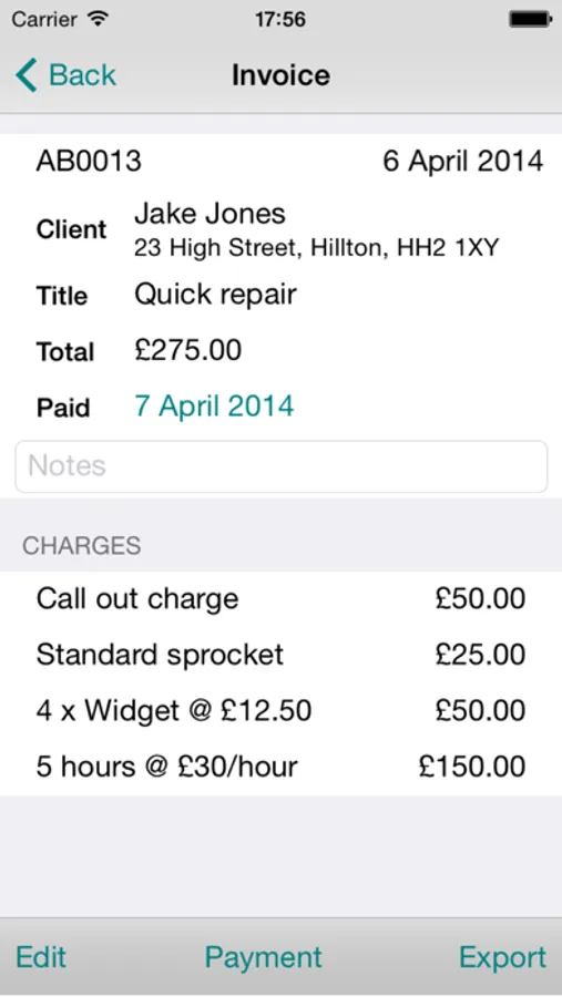 Invoices can be grouped into paid/unpaid and the summary details can be exported to be used in spreadsheets, word processors and other apps.