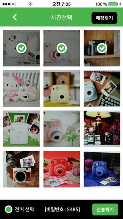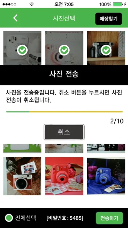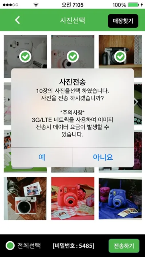 사진을 전송하여 즉석/주문 인화 할 수 있습니다.