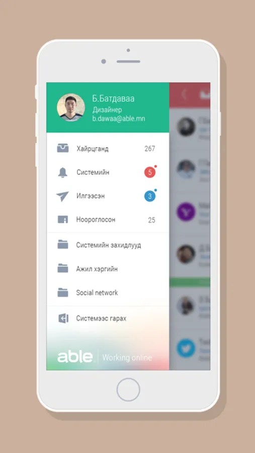 iPhone гар утас хэрэглэдэг “Able Cloud” -ийн хэрэглэгчдийн маань гар дээр Able Mail нэртэй шинэхэн апликэйшн очиход бэлэн боллоо. Албаны э-мэйл хаягаа гар утсан дээрээсээ бүрэн хянаж хаана ч явсан та албан захидлаас хоцрохгүй бөгөөд аливаа мэйлийн хариуг тэр дор нь өгөх боломжтой болох нь. Үүнээс хойш ажлын болон гэрийн интернет тасарсан үед утасны 3G-гээрээ холбогдон захидлаа хянаад байж дээ.