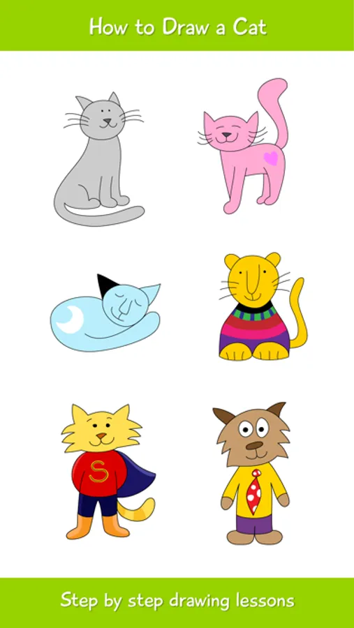 With this creative drawing game you can learn to draw 24 various cat characters. Some cats are princesses others troublemakers and all of them are fun to meet!