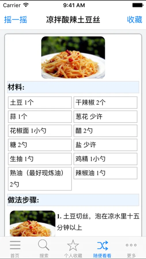 精心挑选各大菜系多道美味佳肴,配以详细的食材,搭配、调味方法介绍,让你玩转厨房!离线数据,全设备通用。一键收藏,摇一摇随机选择菜谱,支持全文搜索。