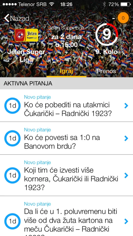 - uživo pratiš i komentarišeš utakmice putem live bloga